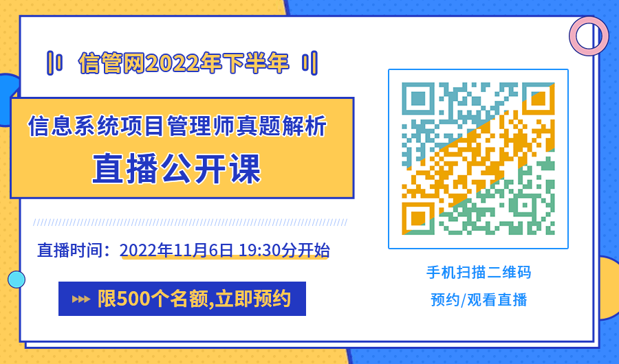 最后想說的肯定是希望各位同學(xué)養(yǎng)好精神,預(yù)祝大家順利通過考試,拿到軟考證書!同時(shí)信管網(wǎng)也會(huì)在考試結(jié)束之后更新2022下半年軟考考試真題答案及解析,歡迎大家考后來對答案估分,還有真題解析公開課等著大家,敬請關(guān)注。